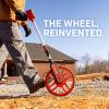 The Crescent 30cm Measuring Wheel features a handle-mounted counter providing clear visibility of the measurement and accessibility to the reset button. Its centerline design and pistol grip handle provides balance and comfort while measuring long distances. The folding kickstand holds the wheel upright when hands need to be free for other tasks. Additionally, the measuring wheel folds to a compact size for storage.